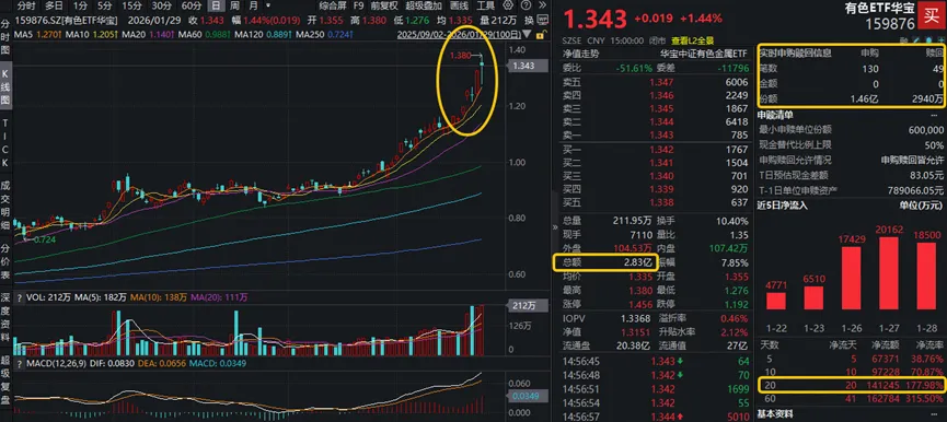 ETF放量突破上市高点,资金积极进场抢筹!有色ETF华宝(159876)全天获资金净申购1.17亿份,此前20日连续吸金,合计狂揽超14亿元!