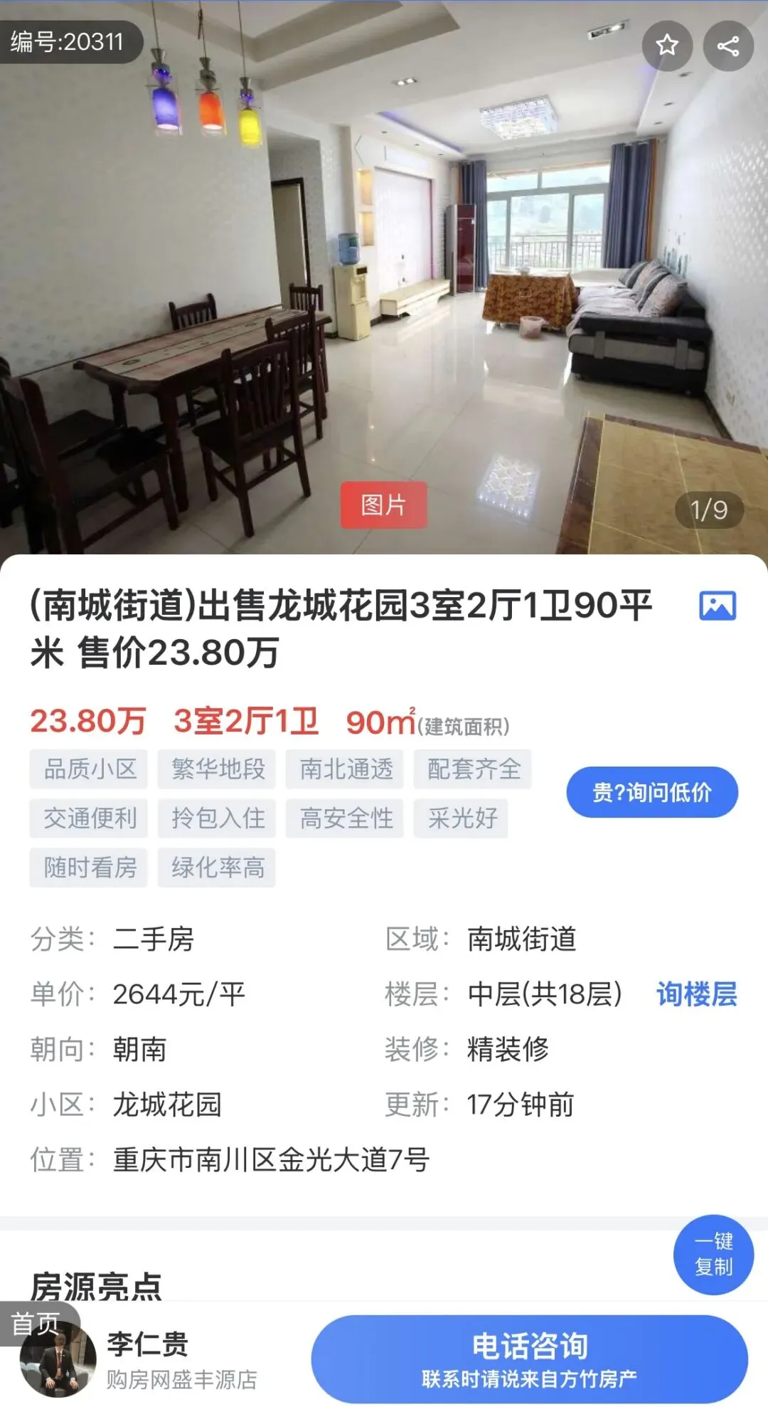 >【方竹房产】南川老城有房出售,三室只要23.8万元!