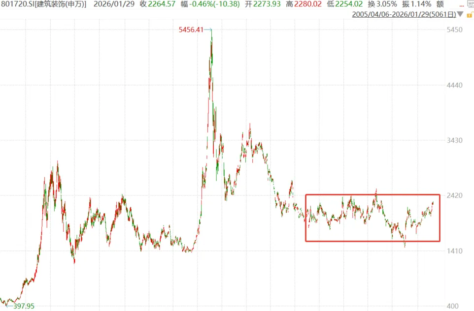 建筑材料与建筑装饰作为房地产上下游关联行业,同样处于历史估值低位。建筑材料板块当前市净率约1.1倍,历史分位水平为22%左右;建筑装饰板块估值同样较低,其板块整体市净率约为0.86倍,位于历史30%左右分位水平。这些板块的股价当前也处于历史较低区域,随着基础设施建设持续推进、城市更新等政策支持等,行业集中度有望提升,长期看或具备一定配置价值。