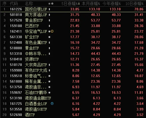 当前最忌讳的就是仍了错位的而去硬追热门历史大高位的。一些ETF近期已经表现巨大+泡沫炒作也很大,真的很危险了!后面砸起来是肯定不会温柔的,急拉后注意规避。