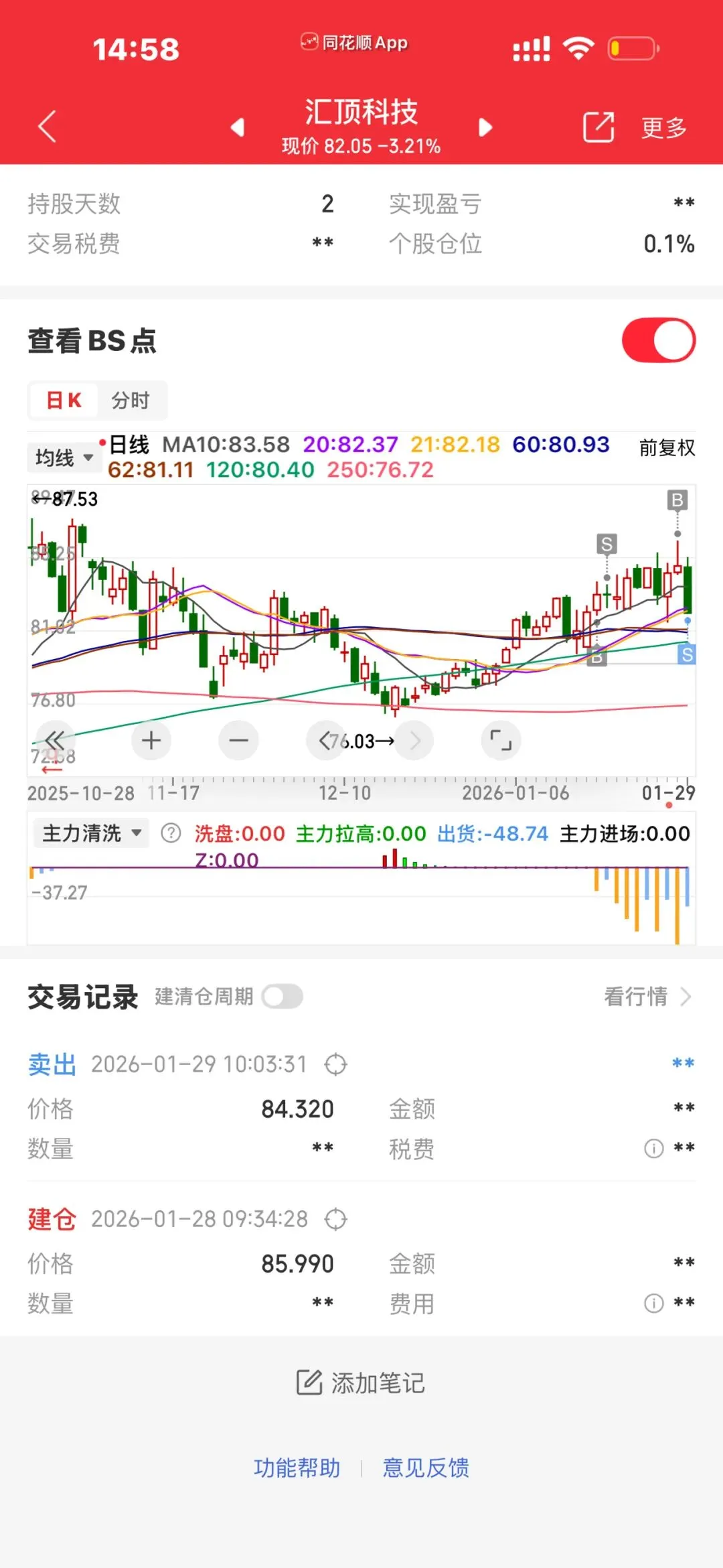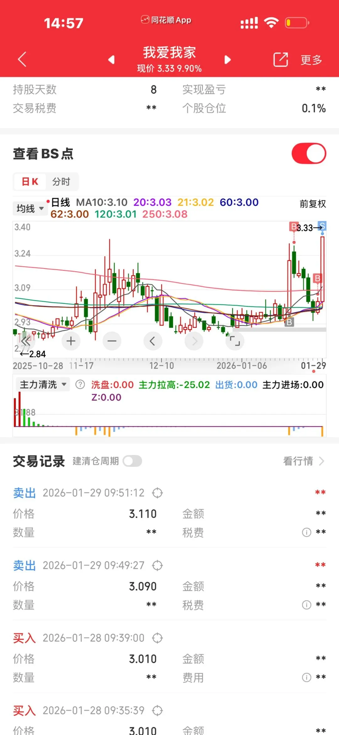 我爱我家、品渥食品卖飞,拿的久了解套就想卖了,应该留点底仓的。两支各15%的仓位,仓位过重影响了心态,卖的不好。科力股份和通源石油卖飞四十多个点,😭