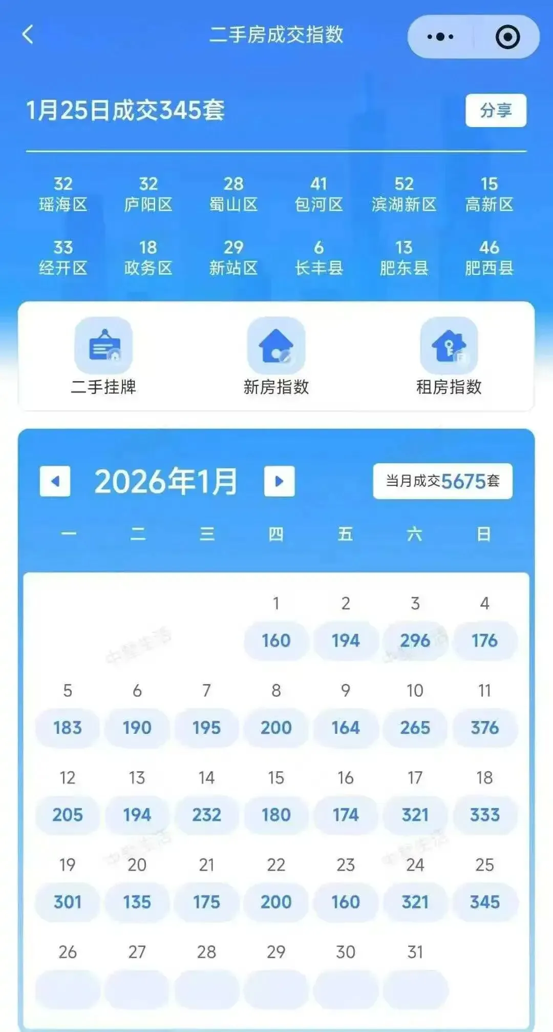 截至1月25日,合肥全市二手房成交已达5675套,日均成交227套,若按此节奏推算,全月成交量将轻松突破7000套大关。