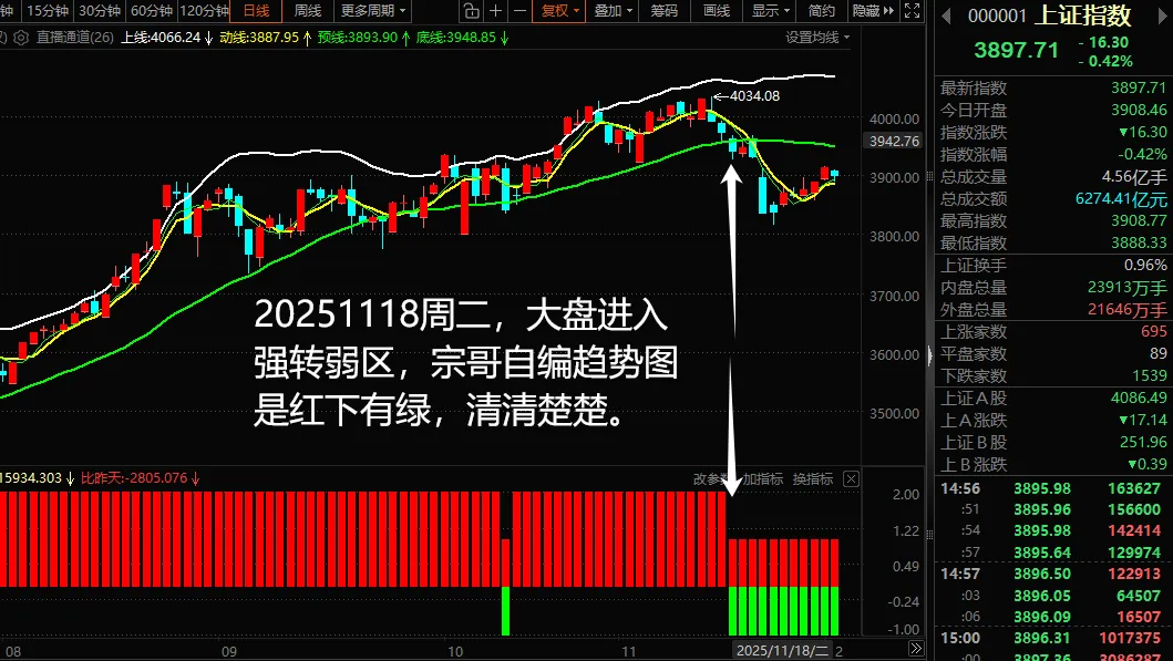 宗哥自编的大盘趋势图:请认真揣摩其参考价值,最新解读在直播间。