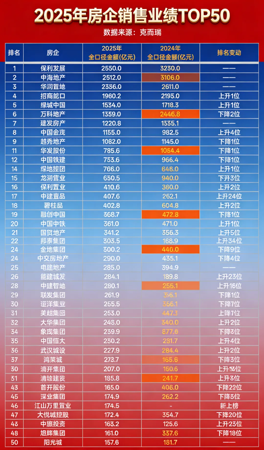 2025年的房企销售榜单,用熟悉又陌生四个字来形容最为贴切。