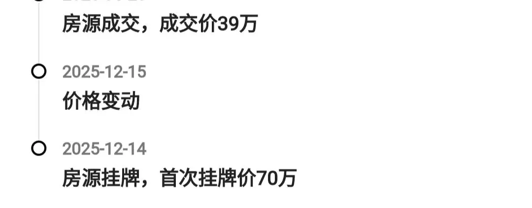 根据调价记录,该房源于2025年12月14日挂牌,首次挂牌价70万。挂出就进行了调价,降到了48万。挂牌期间仅调价1次。
