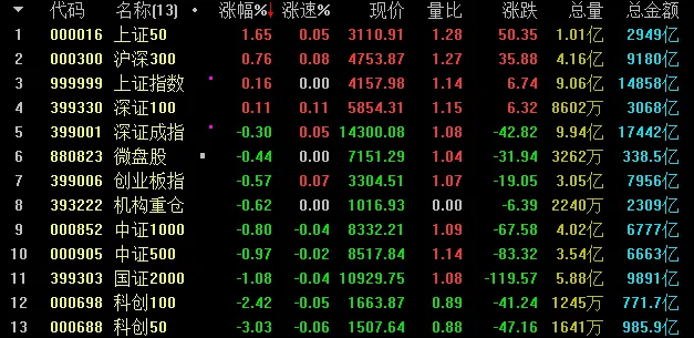 指数继续分化,上证50领涨,科创50领跌,且指数基本上按照估值从低到高排序。科普一下,科创50和科创100是全市场估值最高的两个指数,比大家认为的题材股指数国证2000还高一大截。