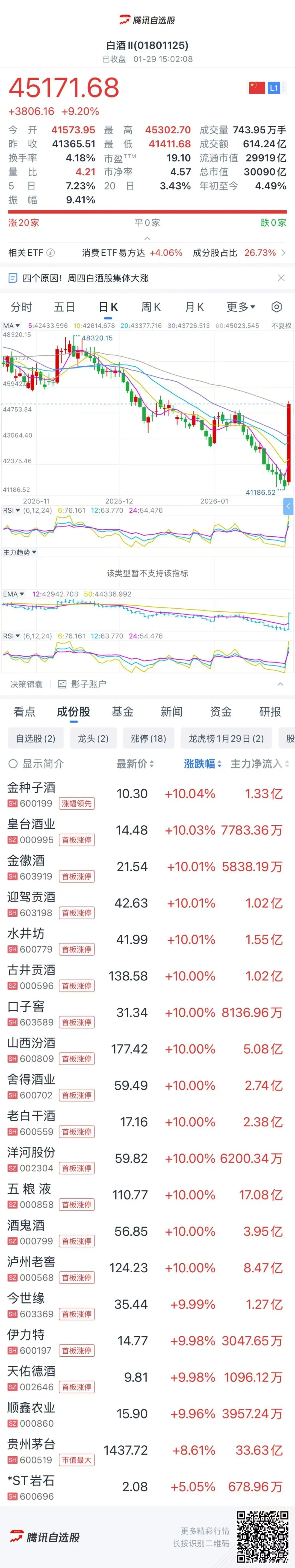 另外,与房地产板块直接相关的,是白酒板块迎来同样的暴涨。