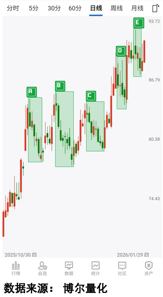 咱们先站在「事后诸葛亮」的角度,把这张图的走势「摊开了看」:股价从底部启动前,经历了A、B、C三轮反复震荡——这是机构拉升前的「磨底戏码」;启动拉升后,又有D、E两轮震荡——这是拉升中的「洗洗更健康」。如果现在回头看,结论特别简单:持有不动,就能赚最满的利润!前三轮震荡不用慌,都是「拉升前的铺垫」;后两轮震荡不用怕,都是「涨势中的小插曲」。但!这是「马后炮」啊!真实投资里,谁能提前看到未来的完整走势?根本做不到!