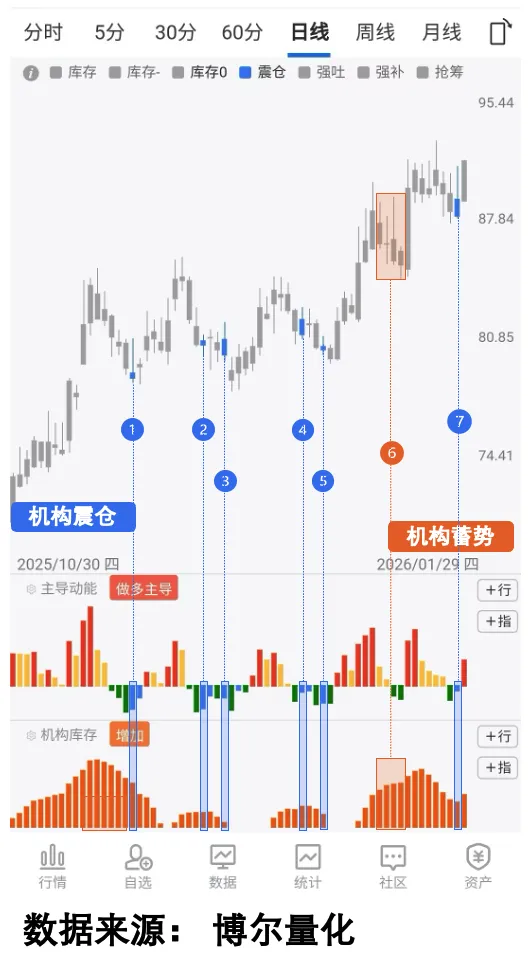 普通投资者怕调整,是因为「看不懂下跌的原因」;而博尔系统用机构震仓、机构蓄势等量化数据,直接把机构的「小动作」扒出来——
