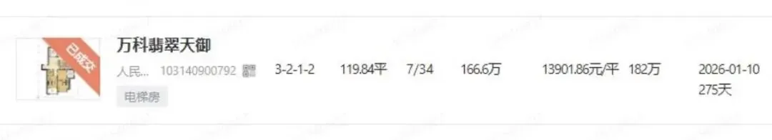 徐州二手房:万科翡翠天御最新成交价1.39万,已经低于2017年开盘价.