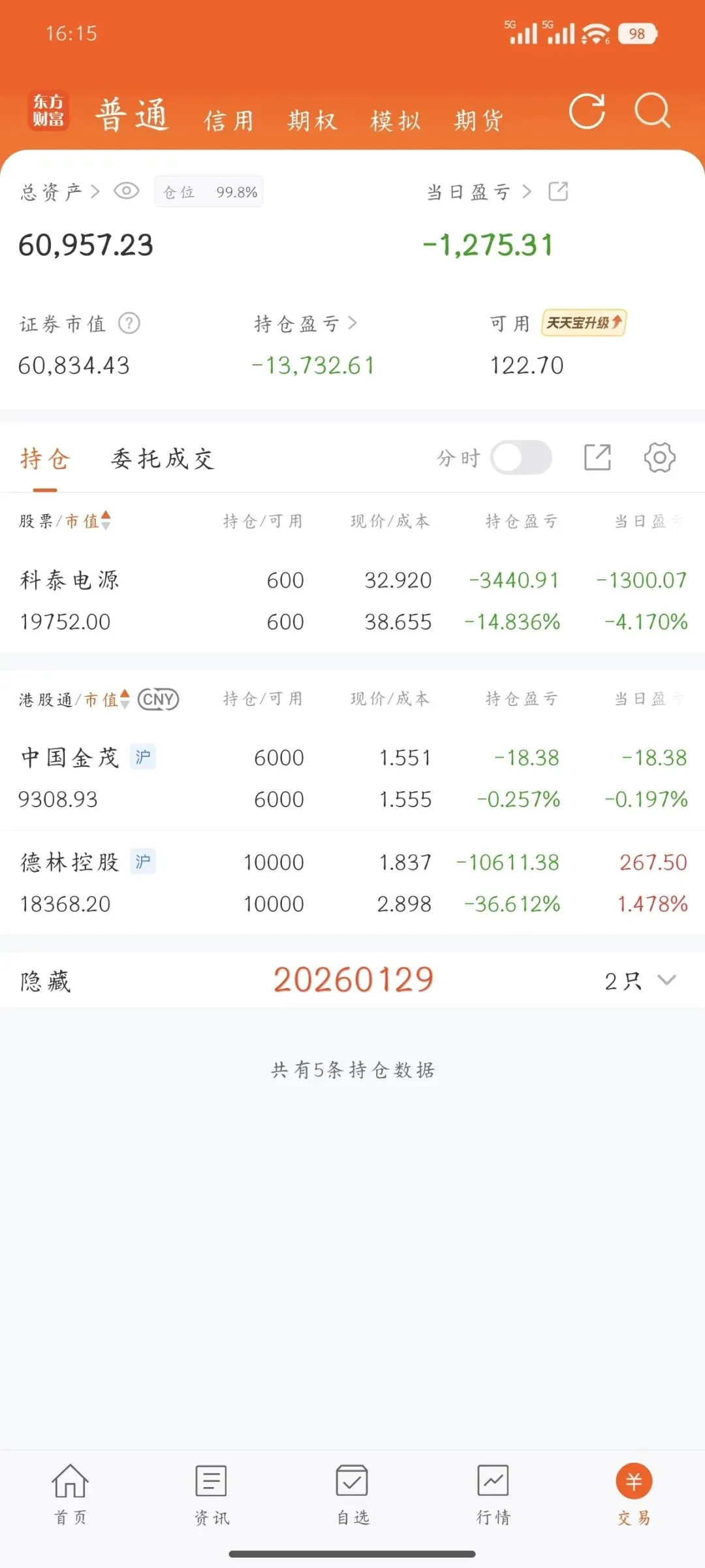 交易感悟:今天我减仓了科泰电源,该股已经连续五天下跌了,我刚好又买在了高点,今天还有跌幅扩大的趋势,确实让人大失所望。之前设想的是追涨不杀跌,所以今天并没有全部清仓。不过该股已经跌破20日均线,如果后面还是不能反弹上来,那看来又得止损了。考虑到地产股也已经跌了很长时间,目前处于低估阶段,加上今天地产股迎来反弹,我于是另外选择了一只地产股中国金茂。该股在众多地产股的走势来看还是比较好的,去年以来该股也涨了80%以上。后续对该股的操作会遵循如下策略:保留今天建仓的6000股不动作为底仓,如果后续大跌考虑加仓,大涨也会考虑适当减仓。由于目前股价还处于相对低位,所以即便大跌也不用太过担心。希望这一次能做到不追涨杀跌并且持有的时间至少在半年以上。