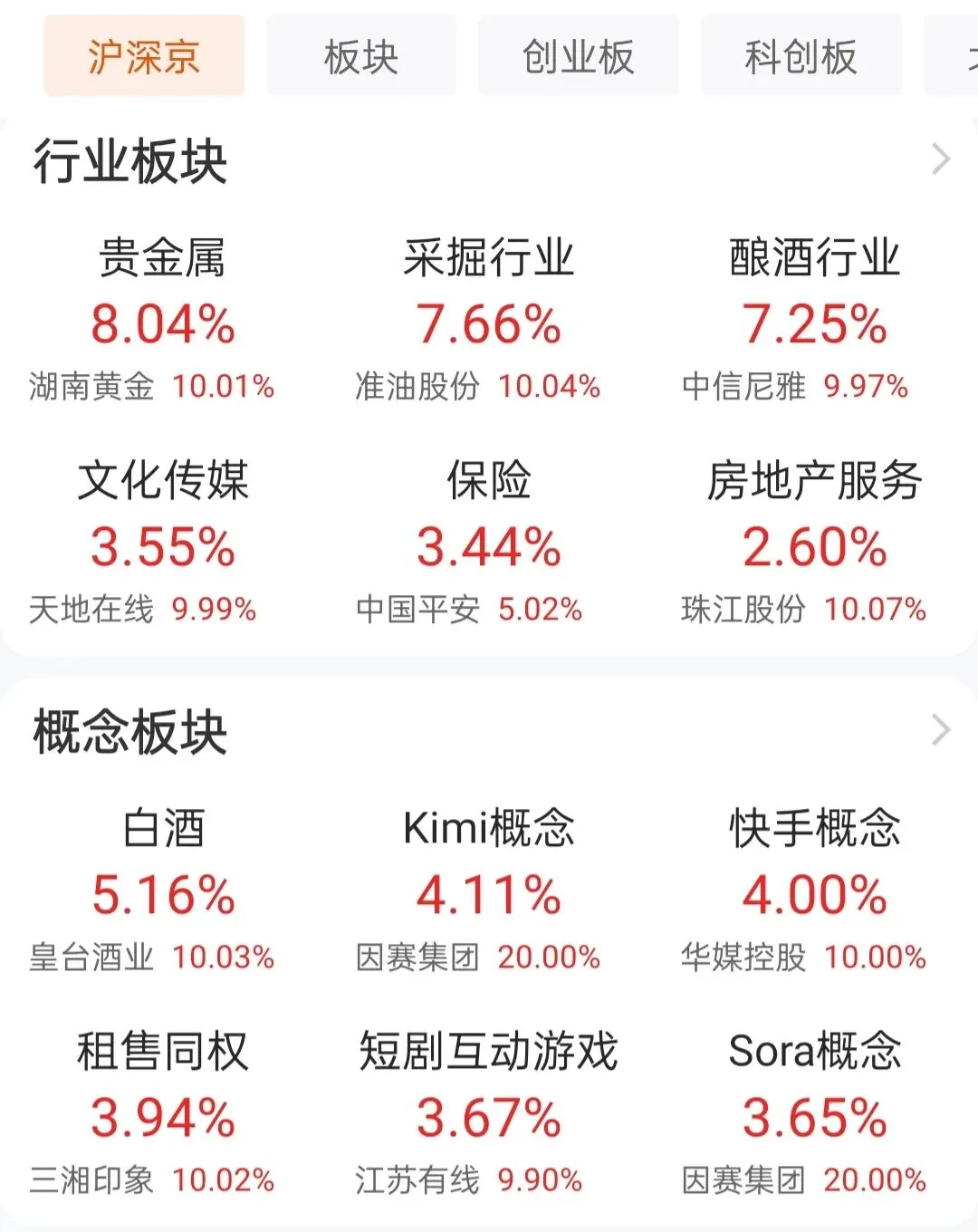 板块方面,贵金属依然在前方领跑,涨了8.04%。