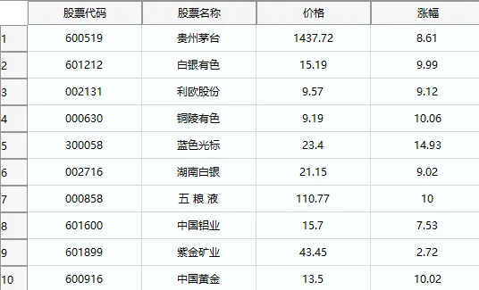 人气个股: