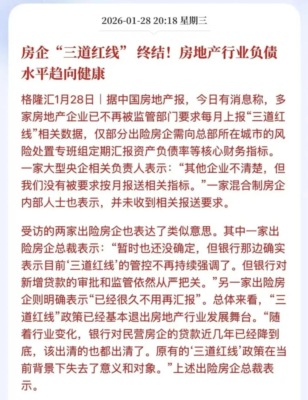 这两天,又迎来了新政策,刺破泡沫的房企“三道红线”终结,说主要房企“三道红线”的硬性监测已经迎来调整。这看似一条普普通通的新闻,实则让我虎躯一震!