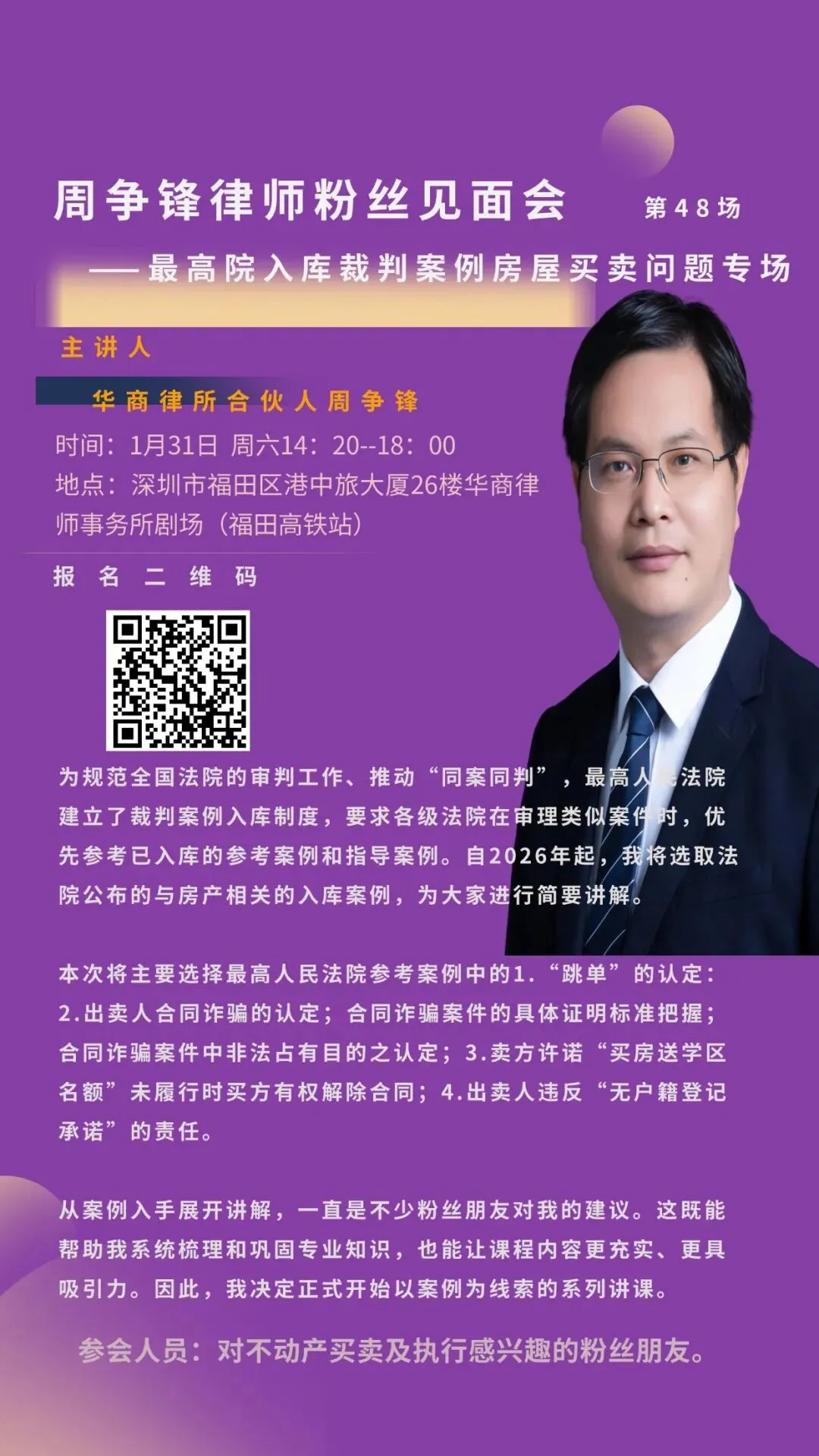 周争锋律师,广东华商律师事务所律师,合伙人,执业证号14403200910803572。2009年执业以来一直从事深圳市二手房交易诉讼和非诉讼研究。司法部中国法律服务网2018首批和2021年第2批驻场房产律师。华商全国不良资产研究院不动产处置中心副主任。2015年深圳3.30房产新政后,深圳法院第一例顶格处罚违约卖家的原告代理律师,该案件经《南方都市报》报道后,成为2015年遏制违约潮蔓延的一个标志性案件。2018年参与研讨制定深圳市律师协会编写的《深圳律师办理二手房交易法律业务操作指引》,为该指引二手房专业术语、律师接受买方咨询、律师接受卖方咨询、二手房诉讼常用证据和解除合同章节的执笔人。《南方日报》《南方都市报》《每日经济新闻》《华夏时报》,深圳买房计划、深圳房地产信息网等媒体常年点评房产问题嘉宾。深圳网红楼盘尖岗山1号维权代理律师。2016年开通微信众号周律说房市,普及房产交易流程及法律知识。2025年开设粉丝见面会房产问题系列讲座,目标一年讲够50场。