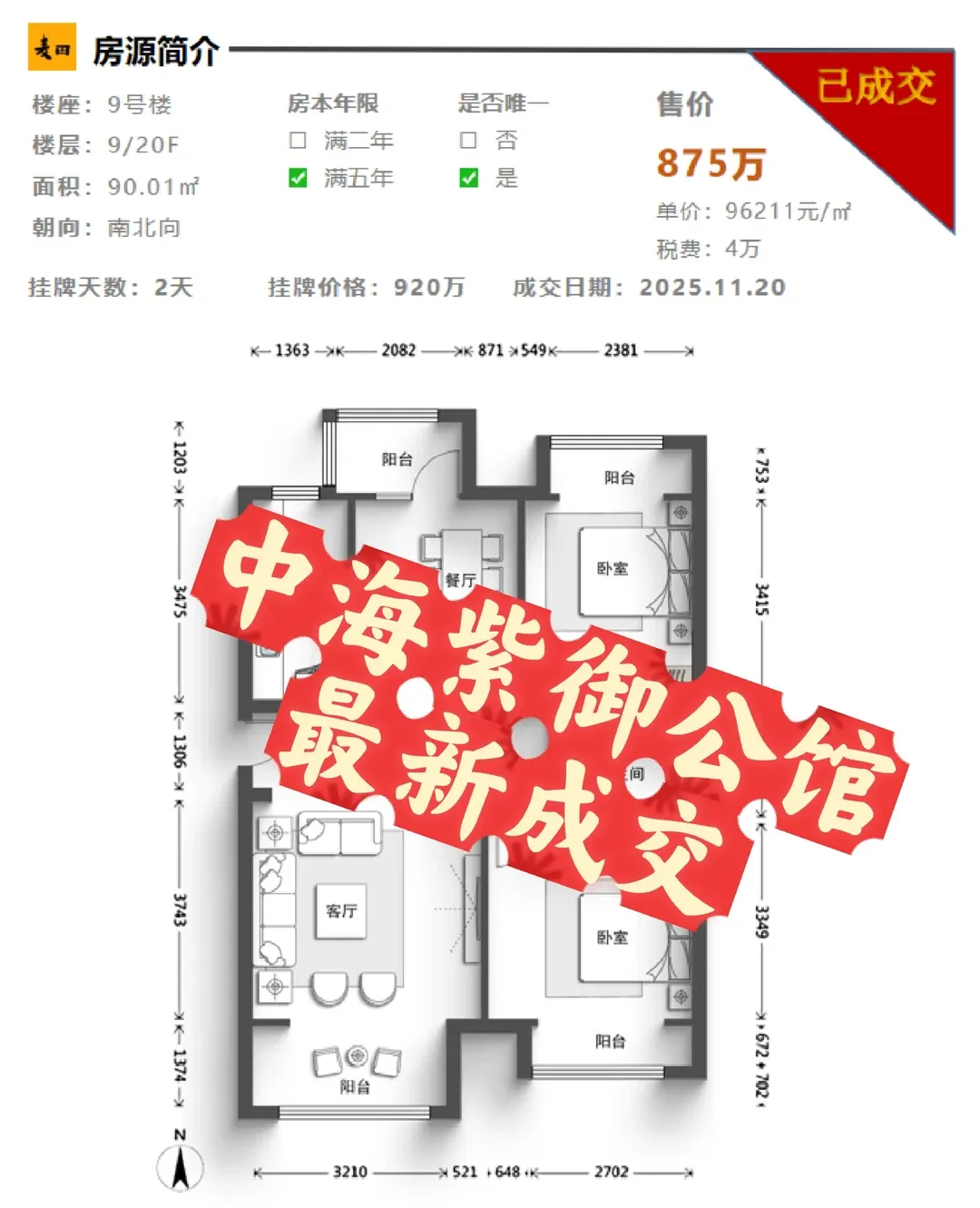 2025年11月:875万(9号楼9层)