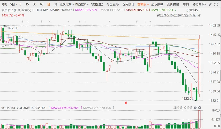 贵州茅台的一根大阳线,几乎把所有均线都收复了,一扫之前的阴霾。