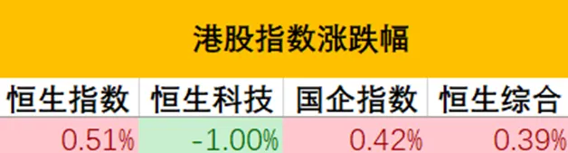 港股三大指数走势分化,恒生指数涨0.51%,国企指数涨0.42%,恒生科技指数表现较弱,最终收跌1%。盘面上,港股的房企放量大涨。港股紫金矿业、江西铜业继续大涨。