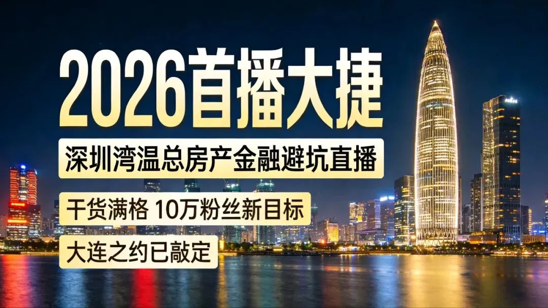 2026年,深圳湾温总房产金融视频号首场直播圆满落幕!这场以普通人资产优化避坑指南为核心的直播,从晚间9点半正式开启,至10点46分结束,历时2小时16分钟,既是我深耕房产金融20年实战经验的一次重磅干货分享,更是我打造个人IP、布局自媒体赛道的重要起点。