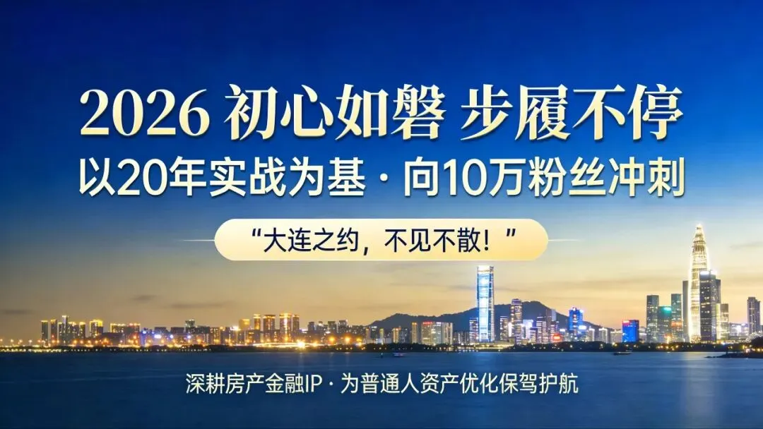 十万粉丝,不仅是一个数字,更是房产金融垂直领域自媒体IP打造路上的重要里程碑**,我当场在直播间向所有家人朋友郑重承诺:若2026年成功实现10万粉丝的目标,将邀请所有助力我成长、支持我的家人朋友,一同奔赴大连,所有费用由我买单,带大家赏大连绝美海景、尝大连特色美食,这份约定,既是对自己的严苛鞭策,也是对所有支持者的真诚感恩。