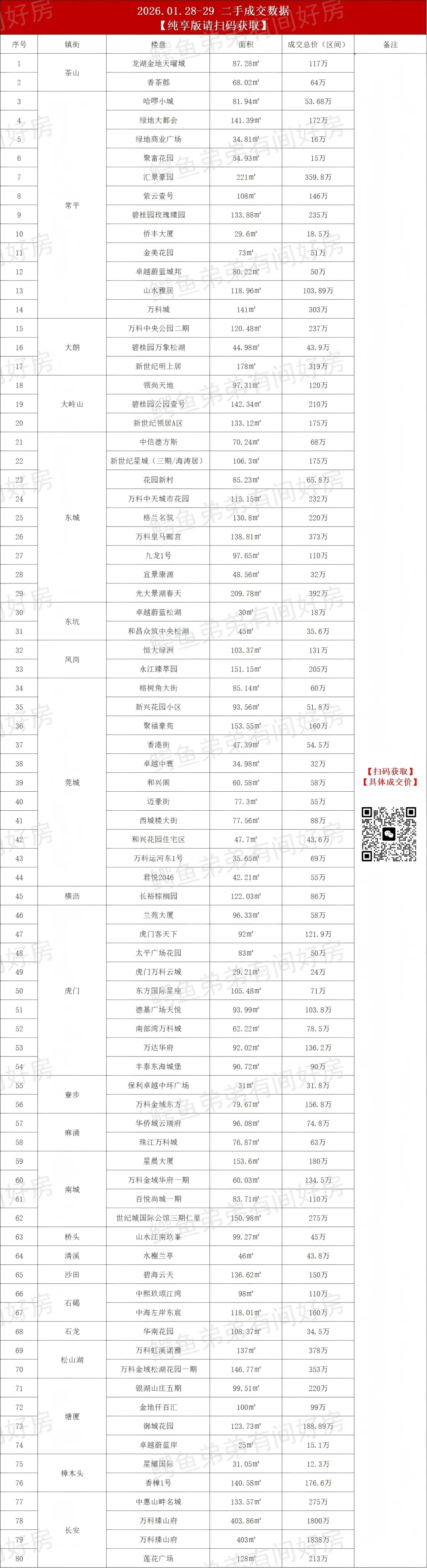 近期因我们统计的真实成交数据,影响到了部分小区的二手交易,受到不少中介同行和业主们的投诉和举报,后续公众号只发成交区间价格,具体的成交总价和单价只发布在我们的粉丝群,有兴趣的朋友请扫码加入。