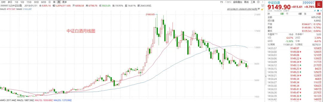 另一方面白酒地产则逆势大涨,白酒大涨9.79%,接近涨停,交易额放巨量至609亿元。