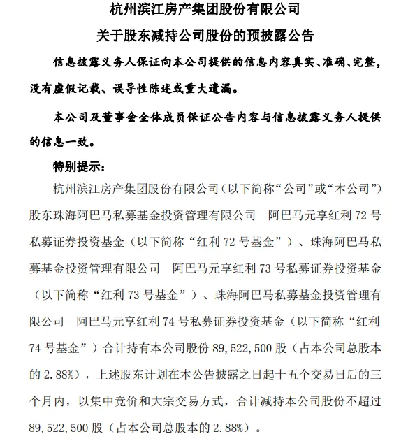 据滨江集团公告,2025年11月15日,公司披露控股股东及其一致行动人元享红利72号、73号、74号私募基金的减持计划,拟三个月内减持不超过8952.25万股,占总股本2.88%。截至2026年1月9日,上述基金已通过集中竞价和大宗交易累计减持6718万股,占总股本2.159%。