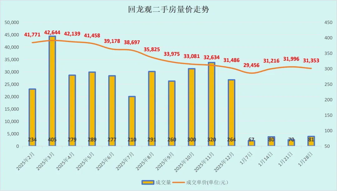 1月第四周昌平回龙观、霍营二手房:量升价稳,均价31353元