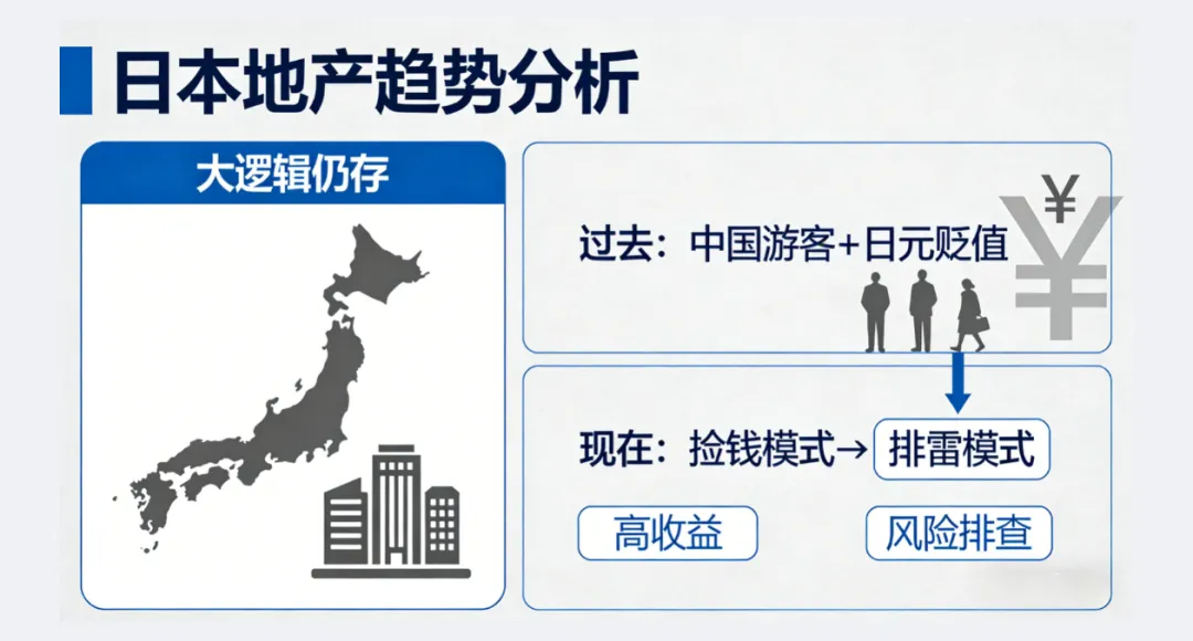 日本地产的大逻辑还在,但“中国游客+日元贬值”的好日子过去了,现在要从“捡钱模式”切换到“排雷模式”。