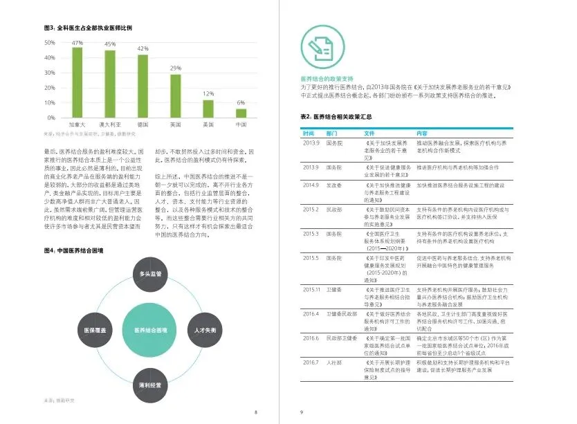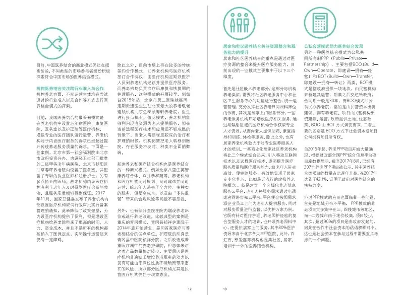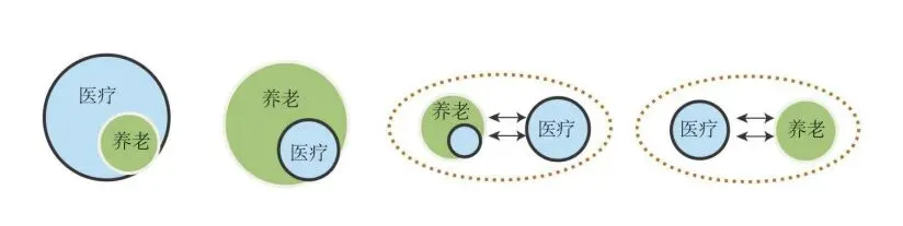 融合型主要指的是由单一机构提供医疗和养老服务,包含养老设施增设医疗功能,以及医疗设施依托自身资源建立养老设施。