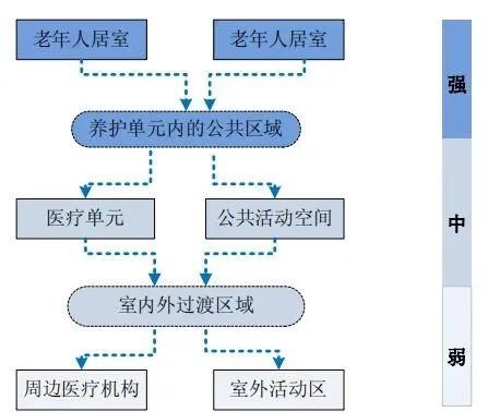把生活照料、医疗康复、公共活动这三个板块安排在老年人居室的附近,保证其使用的便捷性。