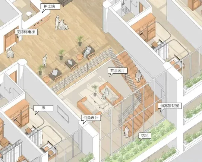 所以设计师应注养老机构内复合型空间的设计,打破功能的局限性。