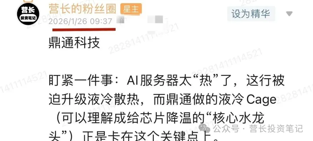 1月14日提到的洲际油气,上涨了41.2%,它的核心驱动是地缘冲突等事件推动的国际油价上涨,因其业绩与油价高度绑定。还有1月26日提到的鼎通科技,上涨了26.1%,它的核心驱动是在主要客户中近乎垄断的核心液冷Cage产品订单激增,驱动公司高速增长。