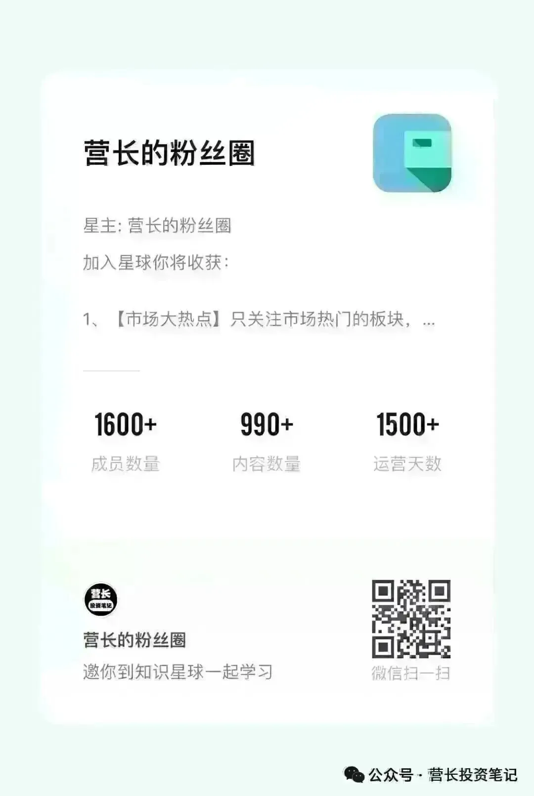 很多深入的研究和及时的判断,在公开平台不方便细说,所以我建了个知识星球,在星球里会更直接地提前分析逻辑、梳理题材机会、回答疑问,并分享我自己选公司看行业的方法。