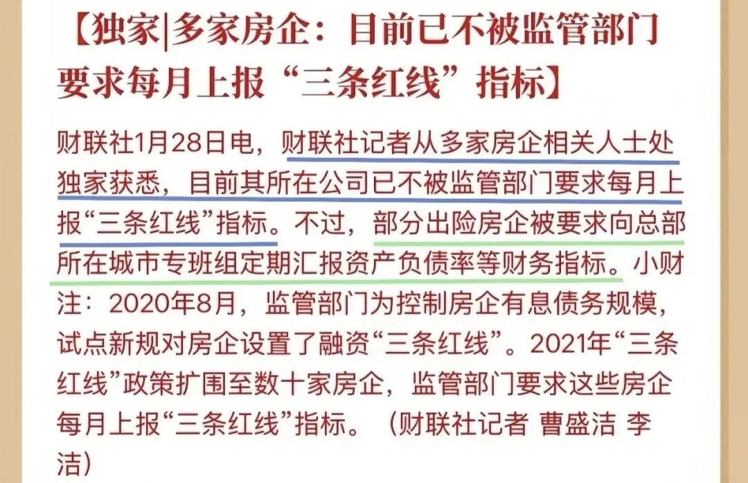 有房企内部的人放出话:现在不少房企,已经不用再每个月上报“三条红线”指标了。
