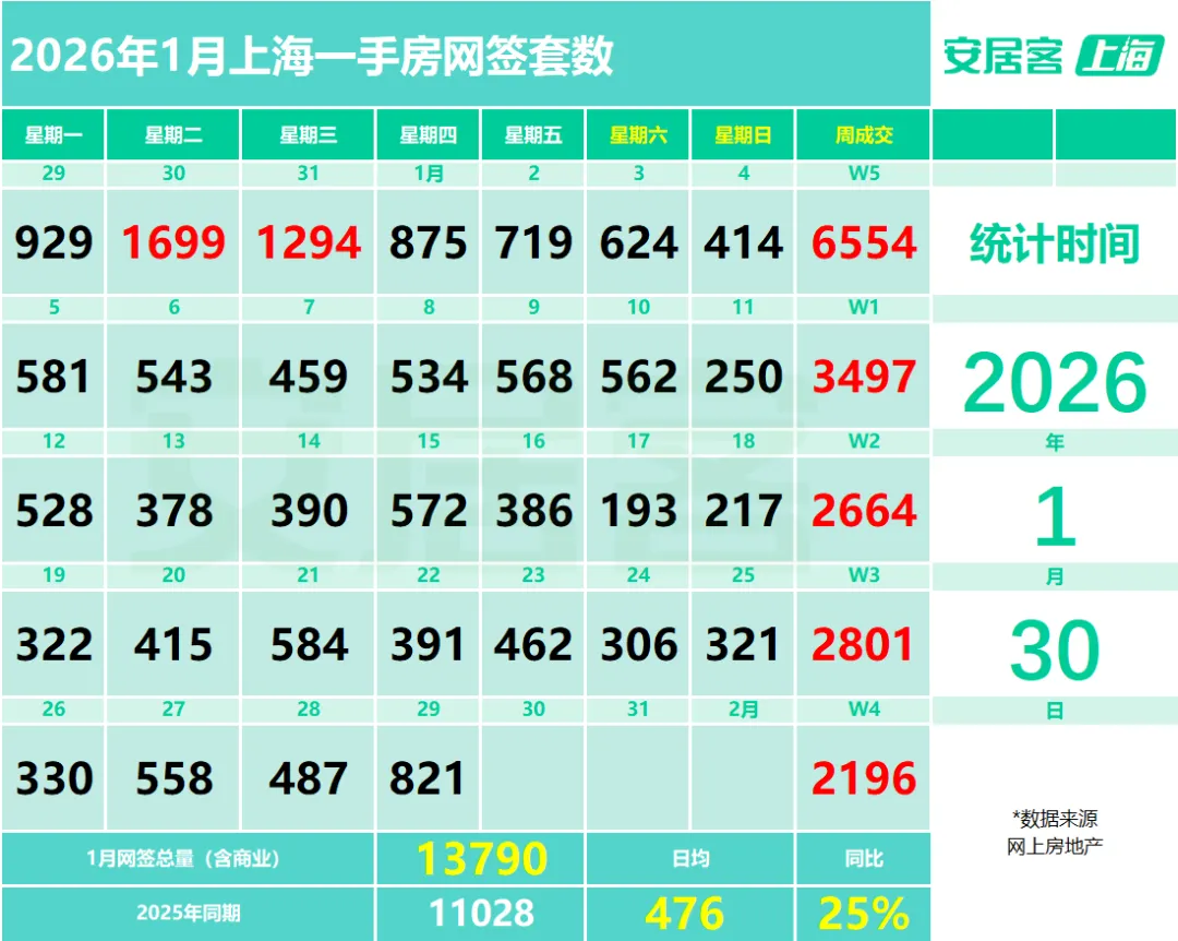 >新房821套,二手房726套!1月29日上海网签数据出炉!