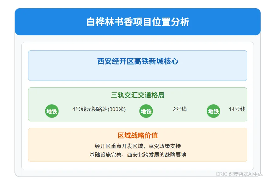 克而瑞·深度智联是地产人的“第二大脑”,房地产行业的首个AI AGENT。它不仅会思考分析,还会提供工作成果,擅长处理您工作中各种场景的任务,可以帮您完成多个复杂工作,是您最佳的AI助手。 白桦林书香项目位于西安经开区高铁新城核心区域,具体位置在元朔路地铁站向西约300米处。