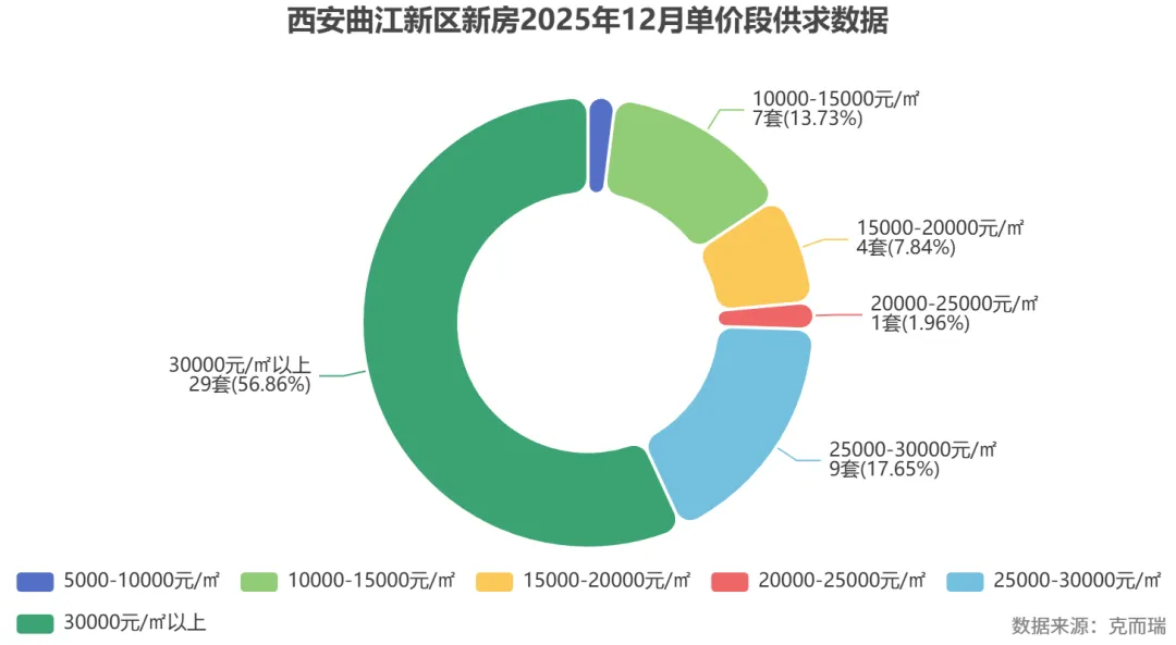 数据显示,曲江新区新房成交主力集中在30000元/㎡以上高端段,占比高达56.9%。