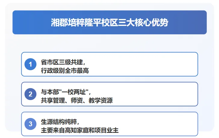 中建博萃府之所以能成为2025年长沙教育品质典范,核心在于其配套的湘郡培粹实验中学隆平校区。这所学校是长沙首个“省、市、区”三级共建的公办初中,在行政层级和资源支持上具有显著优势。