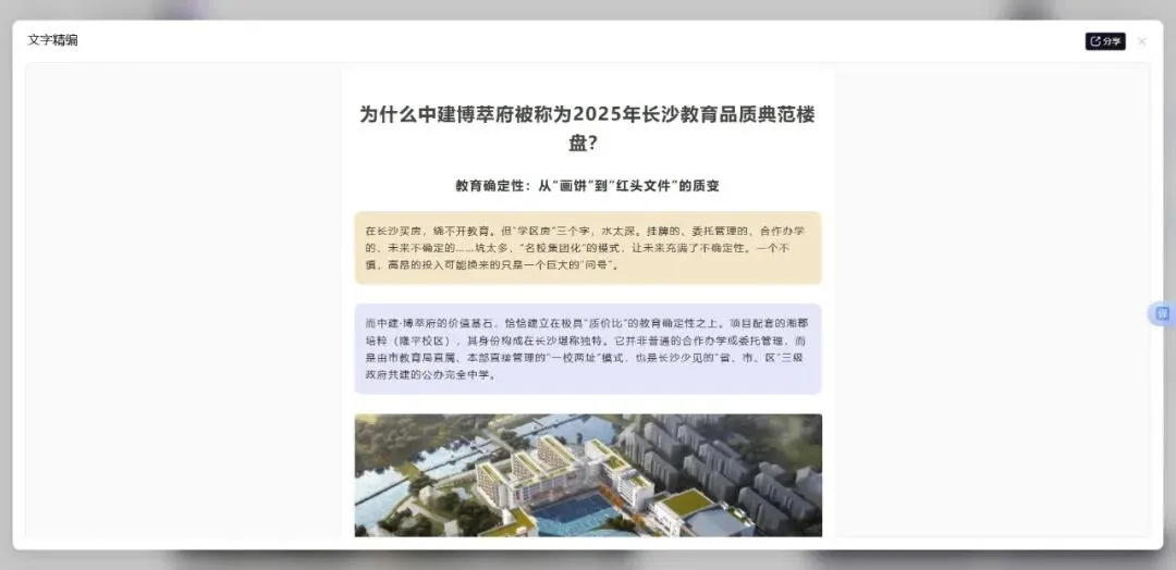 放眼长沙,同时具备顶尖学区背书与卓越产品力的项目并不多见。中建博萃府集齐了这两项核心要素,成为2025年长沙教育品质典范楼盘实至名归。