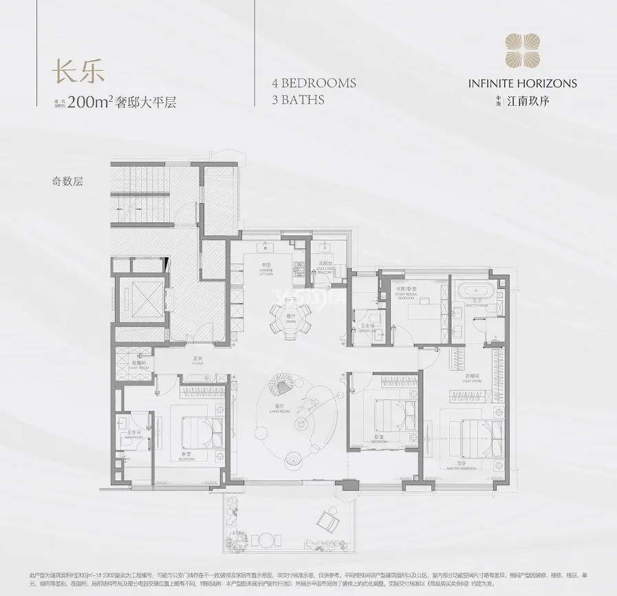 200㎡奇数层露台户型,客厅设置露台,可通次卧。
