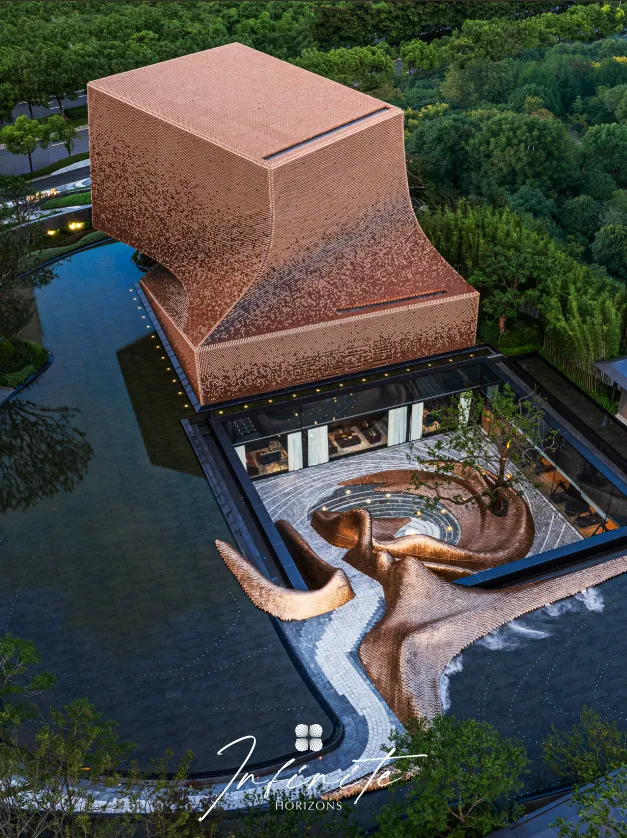 中海江南玖序定位献给南京的文化地标,售楼处以“金陵·金菱”高定精神符号开场,采用八种定制砖型,约13.9万块金陵砖,以像素点的形势组成幕墙,震撼无比,成为南京的一座艺术地标。