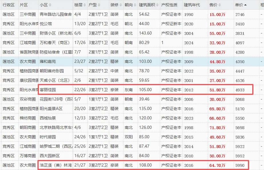 结合实时挂牌数据,以下几套红框房源兼具价格优势与居住实用性,是值得重点关注的优质标的:🔹 富丽佳园(竞秀区・阳光水岸片区)