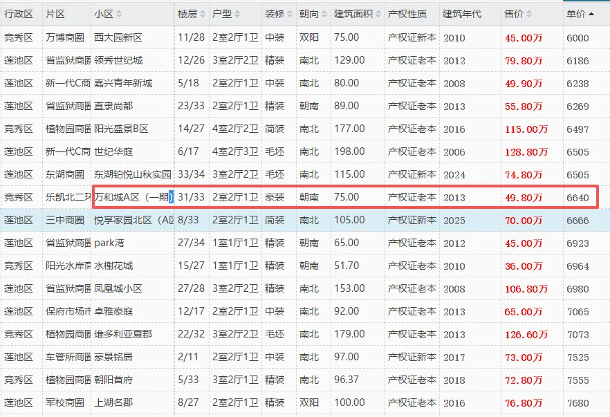 当前保定二手房市场呈现 “刚需为主、改善为辅” 的格局,7000 元 /㎡以下房源仍是成交主力。红框中的富丽佳园、浩正美林湾、万和城 A 区等房源,凭借低单价、优户型、成熟配套等特点,成为当前市场中的 “捡漏” 首选。对于预算有限的购房者,建议重点关注此类高性价比标的,及时把握入市时机。