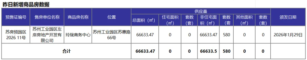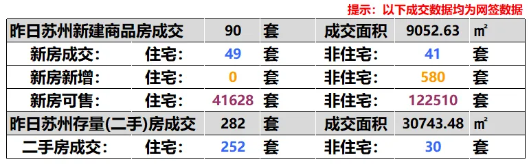 苏州1月29日住宅成交301套,新房住宅成交49套,二手房住宅成交252套,新房住宅新增0套,新房住宅可售41628套。