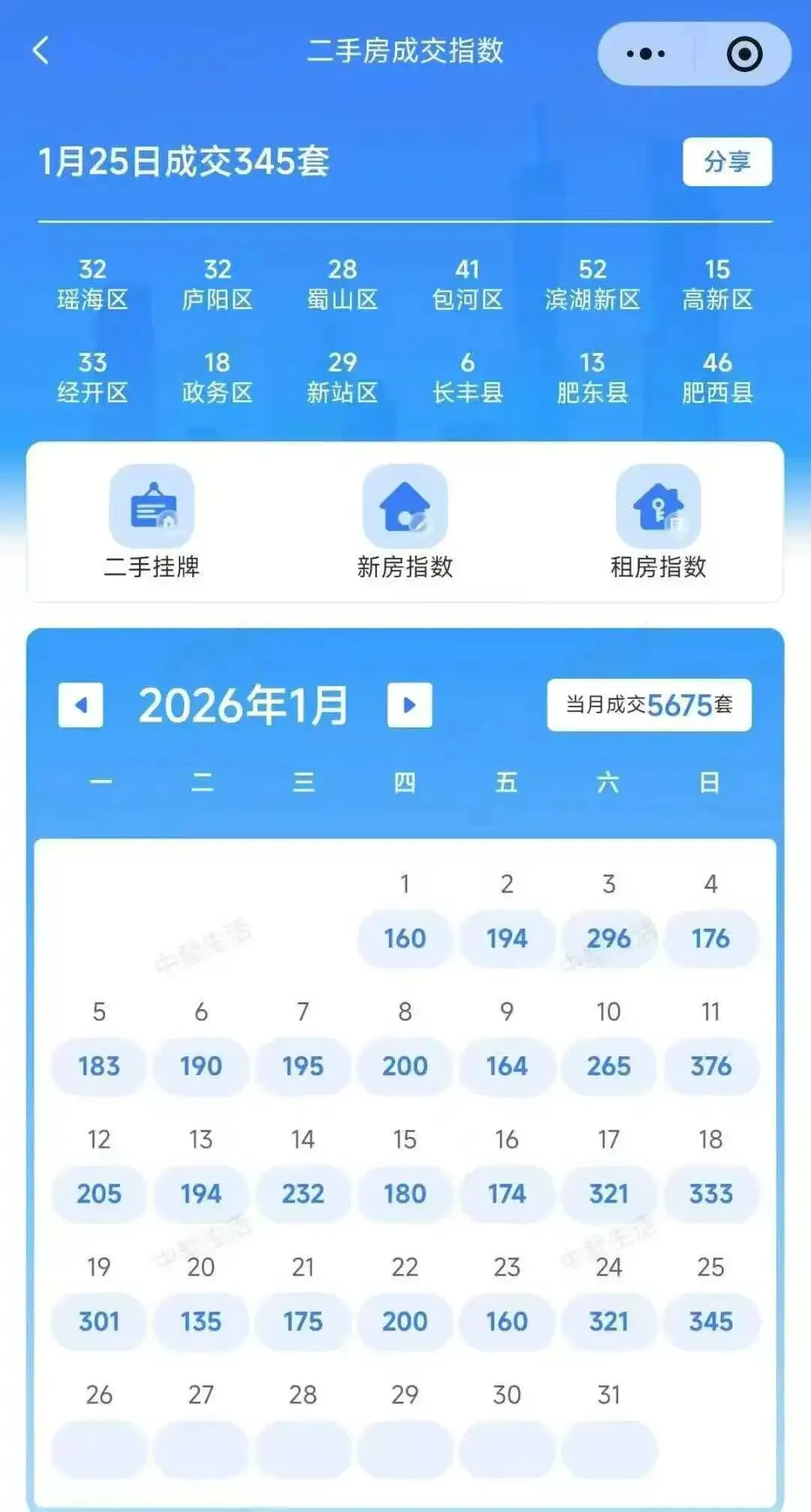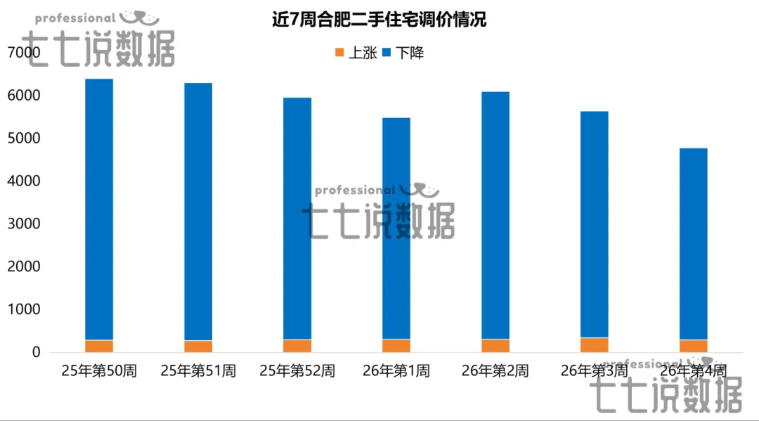 1月份第1周,合肥二手房价格上涨的房源有306套;