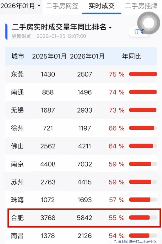 其中,合肥以同比55%的涨幅,位居全国第九,领先南昌、青岛、武汉等城市。