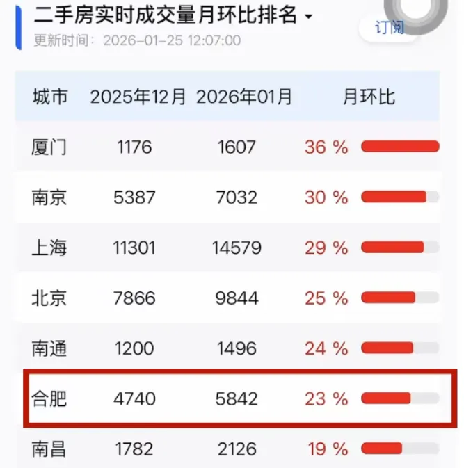 而其中1月份成交量环比的涨幅,合肥更是排到了全国第六名。环比涨幅23%,仅次于上海、北京等城市。