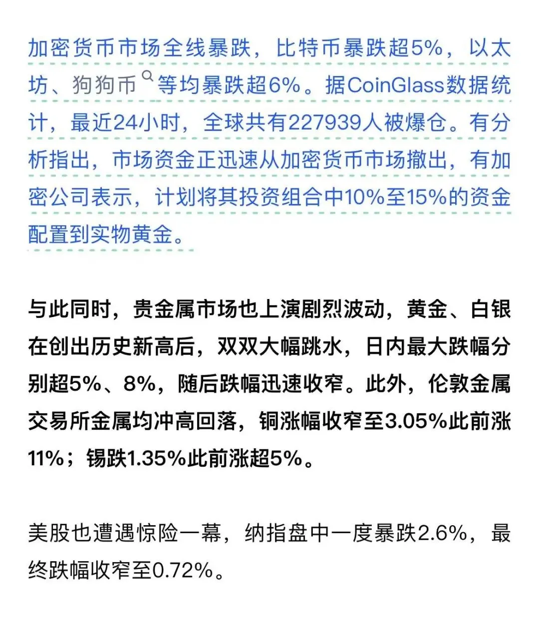 1 .凌晨,全线暴跌!超22万人爆仓!金银、美股,巨震。