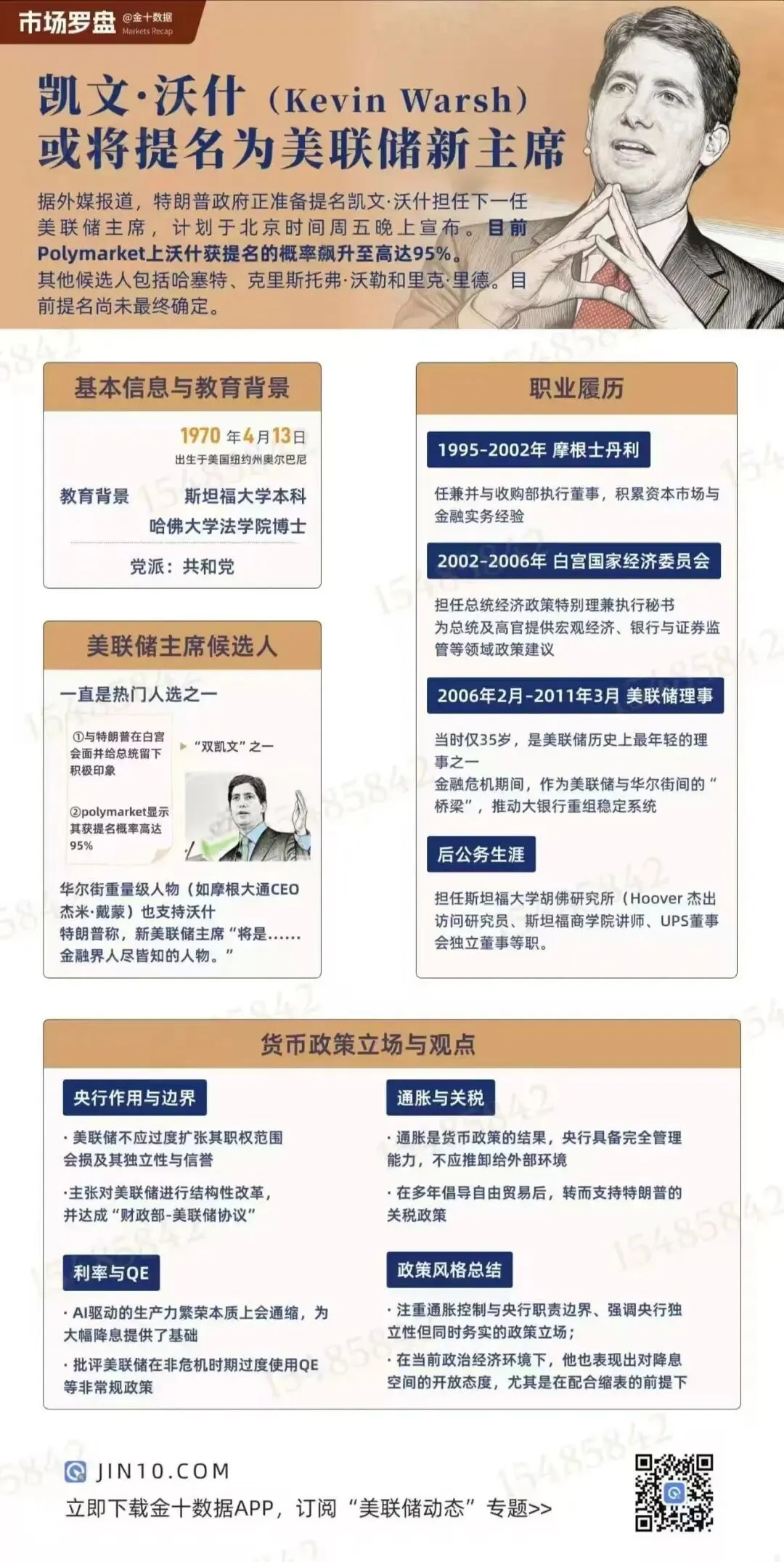 5 . 凯文。沃什(Kevin Warsh)或将提名为美联储新主席。